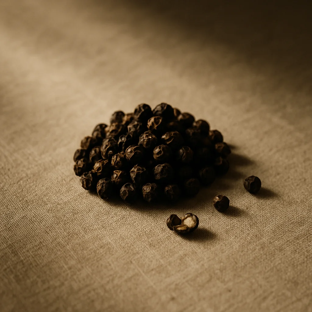 Pepper, cardamom, cinnamon — heat that sharpens the composition.